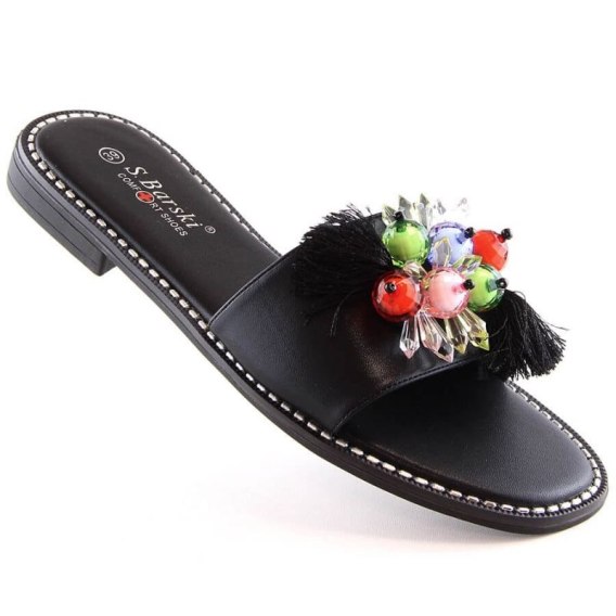 Klapki komfortowe S.Barski KV W OLI216A czarne z koralikami