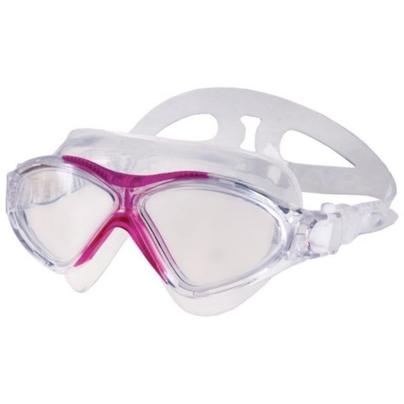 Półmaska – okulary w kształcie półmaski zapewniają wysoki komfort użytkowania przy zachowaniu szerokiego pola widzenia. Idealne podczas aktywności w wodzie. Przezroczyste szkła - zapewniają doskonałą widoczność podczas ćwiczeń i pływania. Przeznaczone dla najmłodszych użytkowników.