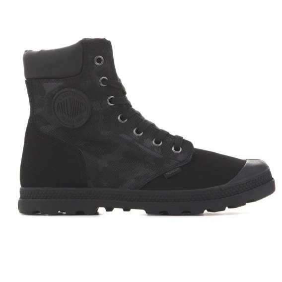 Wysoka sznurowana cholewka i okrągły wzmocniony przód. Cholewka wykonana została z dwóch różnych materiałów tekstylnych, co stanowi o jej oryginalności. Wkładka jest z materiału tekstylnego. Mocna i trwała podeszwa z wysokogatunkowego tworzywa gwarantuje dobrą elastyczność i przyczepność dzięki szerokiemu bieżnikowi. Wygoda i komfort. Logo Palladium z boku, na języku i z tyłu na podeszwie.